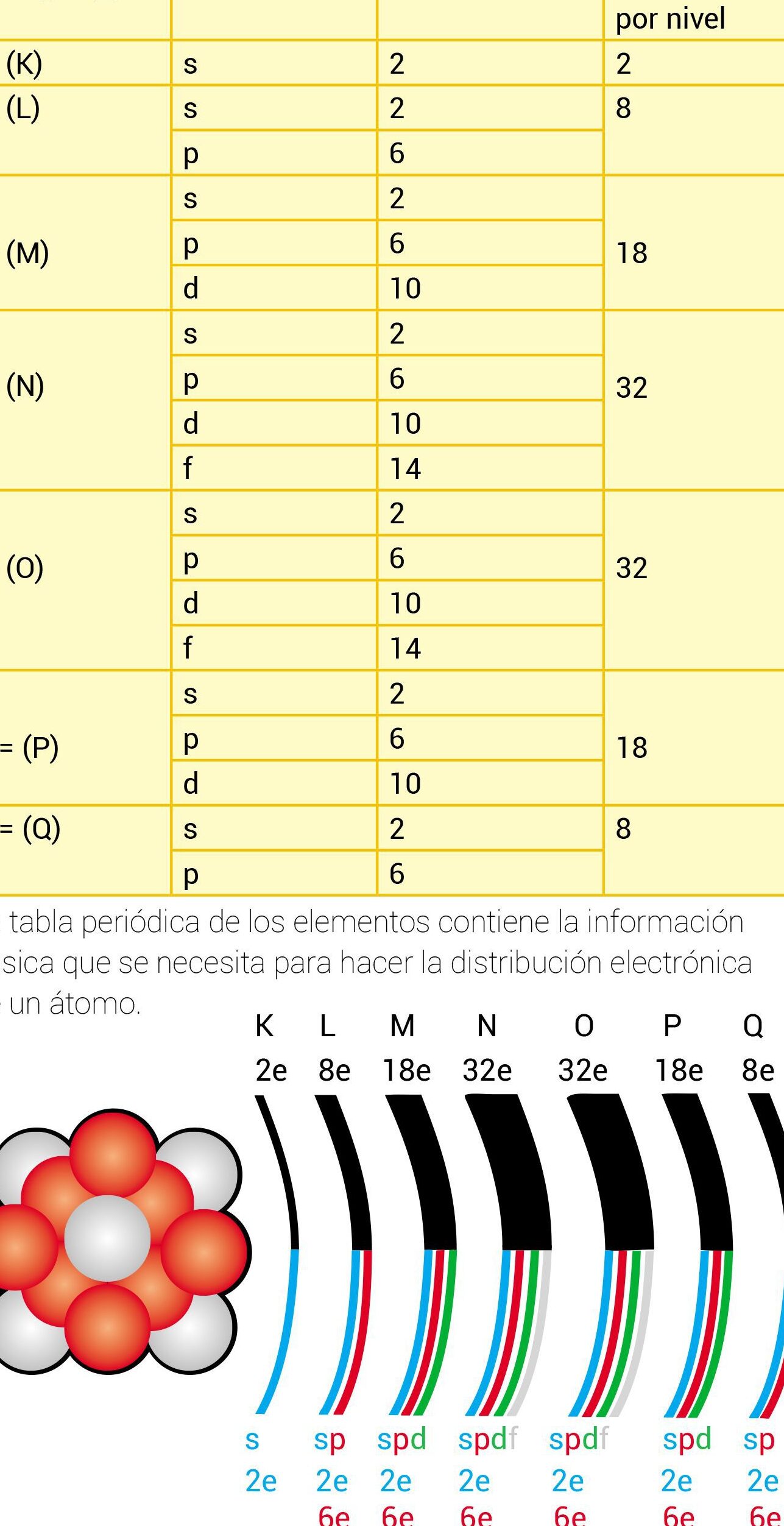 A continuación, te presento una lista con el número máximo de electrones en cada nivel: